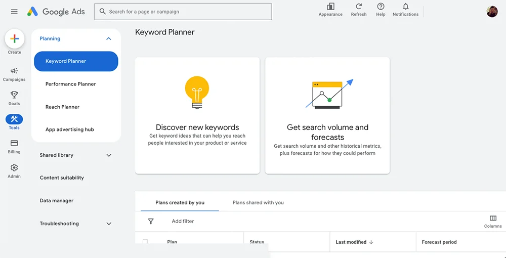 Before setting up Google Ads, it’s important to understand keywords. Doing research will save you time and prevent you from wandering aimlessly. A great way to start your keyword research for free is by using Google Keyword Planner.