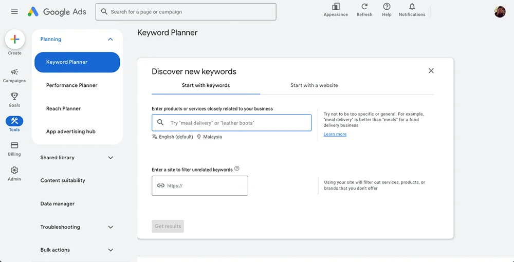 Many people often start their Google Ads campaigns without conducting proper keyword research. They typically input their brand name and product name, and that’s it. While this approach isn’t entirely wrong, it’s more effective to first research and plan your keywords. You can easily do this using ‘Google Keyword Planner’, which is user-friendly. Through this tool, you’ll also discover additional keywords to utilize.