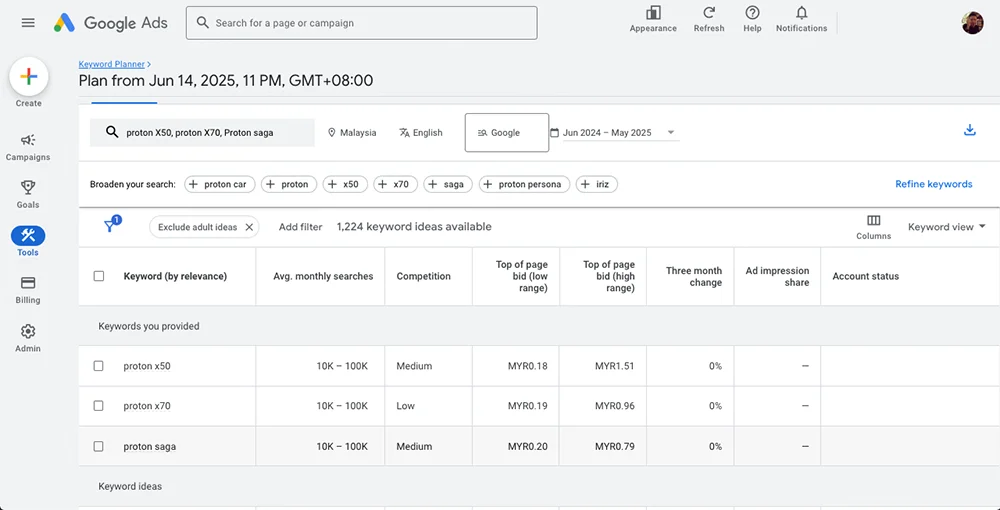 • For the Malaysia market, when you search for keywords you will also see keywords suggested in Malay language.